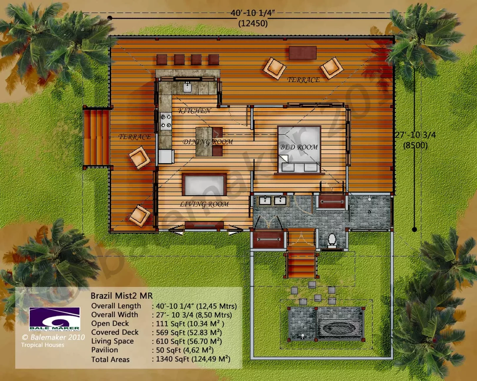 This superb pavilion style home is the flagship of BaleMaker designs and has been built twice in Kauai, Hawaii and currently planned for Oahu Hawaii.