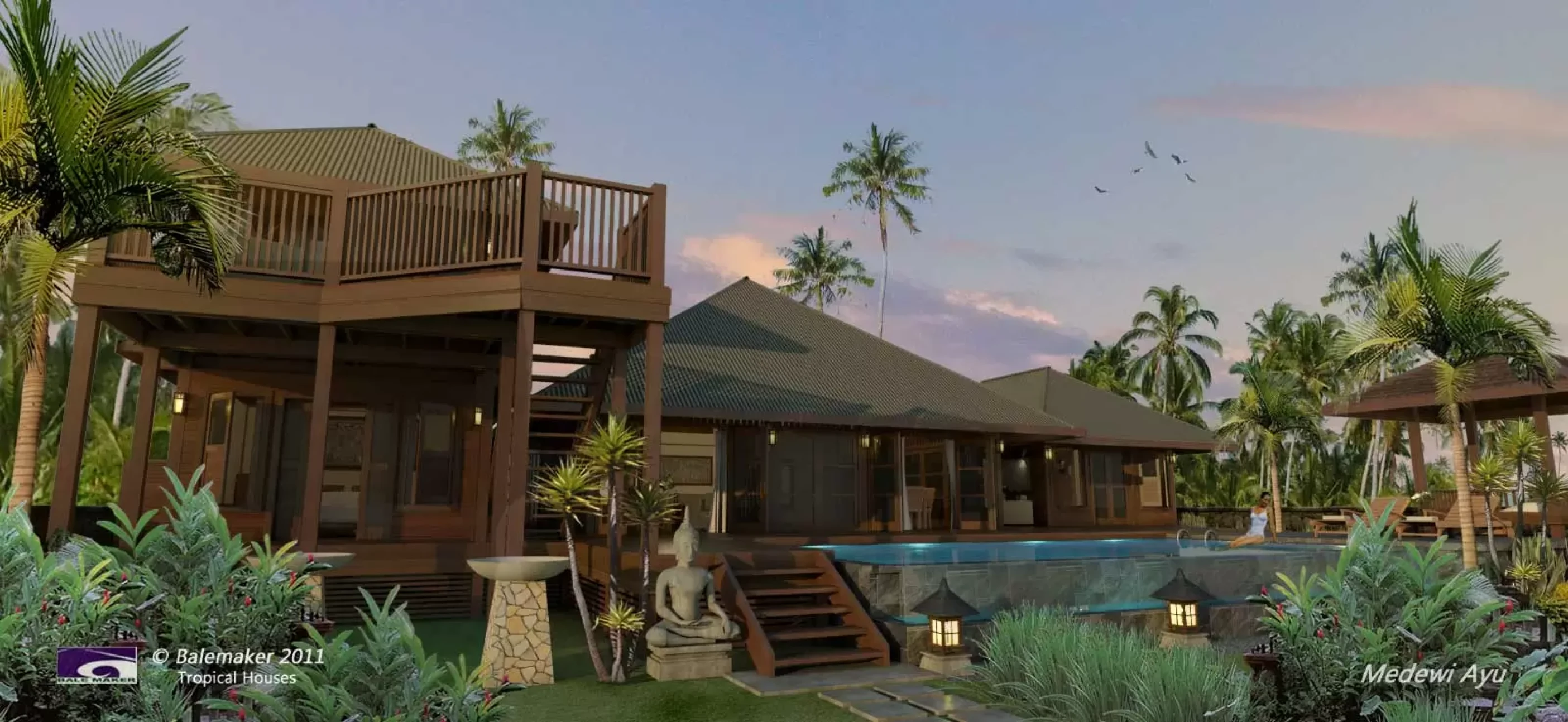 Welcome to Balemaker's Tropical Design Page. In this section you will find the latest range of House & Resort Villa designs, starting from one bedroom suites and Guest Villas to large three bedroom multi pavilion tropical homes. We have also included some of the resort complex concept renders from projects that we have been involved with in recent times