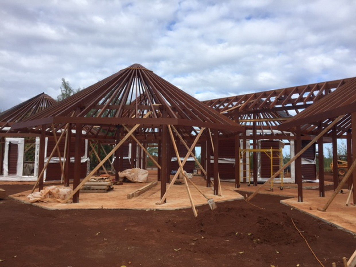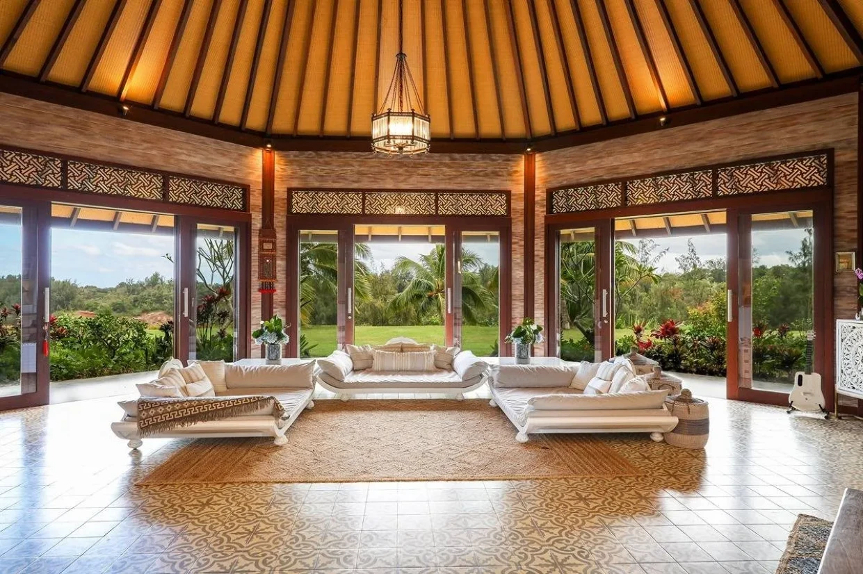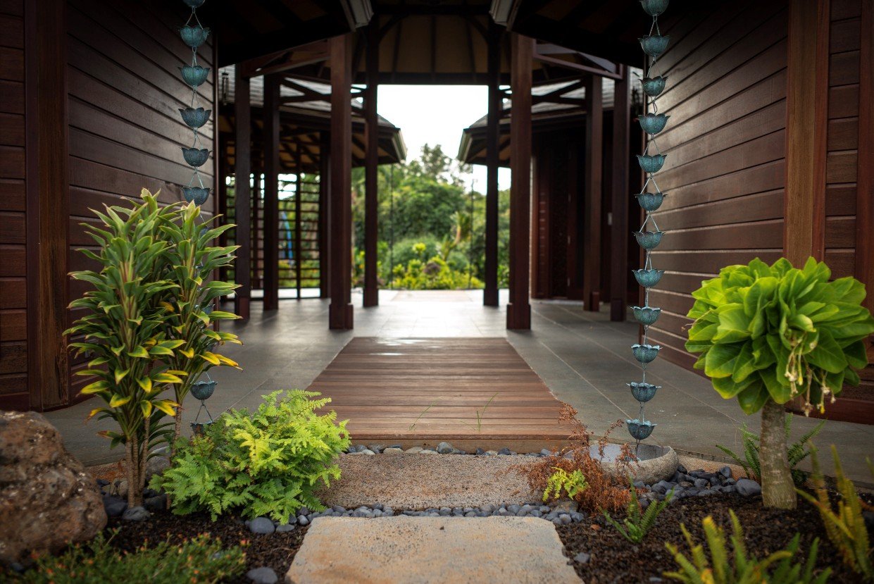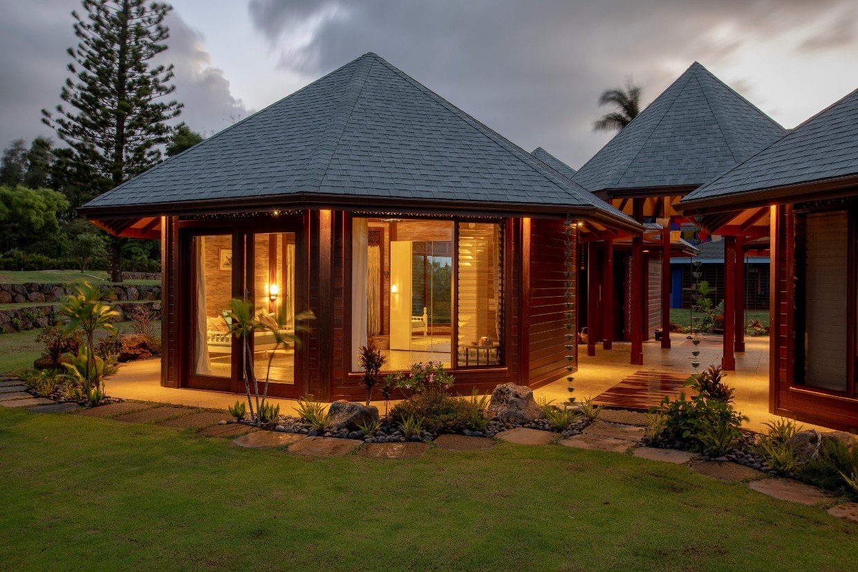 A large residential enclave of Octagonal interconnected pavilions for our esteemed client set in the valleys of the beautiful Maloaa Region of the garden state of Hawaii.The project ran through 2015-2017 in three phases and over 14 x 20ft sea freight containers shipped across from Bali To Kauai. The house features 5 x large bedrooms 2 x bathrooms, an amazing Octagonal Vaulted ceiling great room and a Chilling Covered gazebo/bale. All pavilions have interconnecting breezeways with a large entrance entry foyer. This house is an amazing work of art and attention to detail particularly in the vaulted octagonal timber ceilings is impeccable.